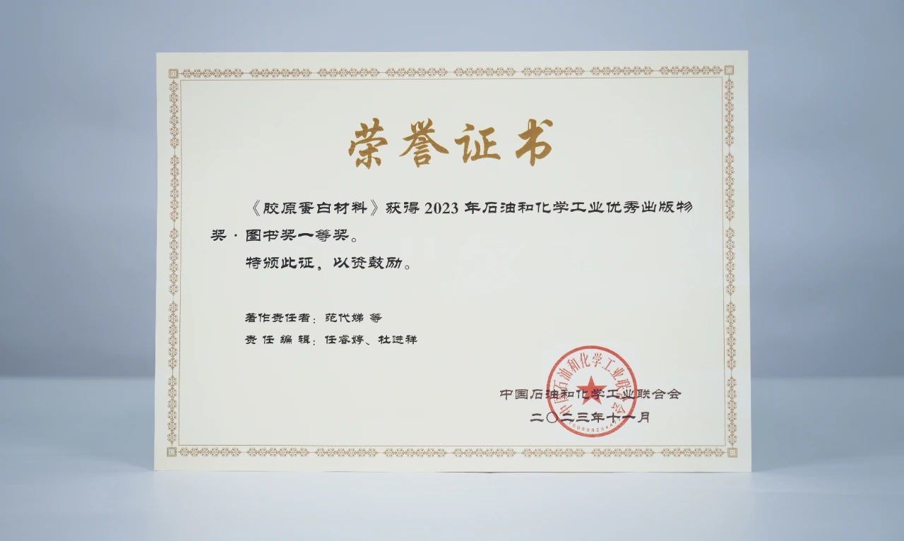喜讯丨范代娣教授等著的《胶原蛋白材料》荣获2023年石油和化学工业优秀出版物奖·图书奖一等奖